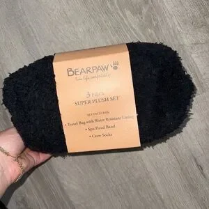 Includes travel bag, headband, and socks. Luxurious and soft.