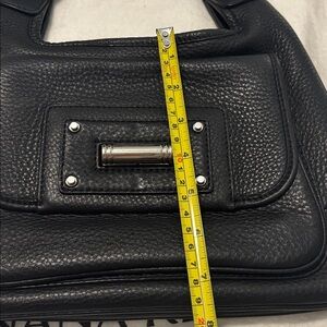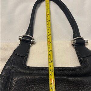 Black pebbled leather shoulder bag quiet luxury silver tone accents work wear corporate wear travel dressy night out