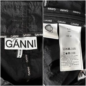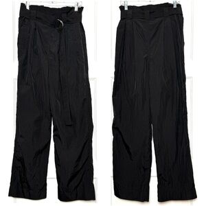 GANNI 90s D-Ring Cinch Belt Pleated High Waist Wide Leg Black Tech Nylon Pants L