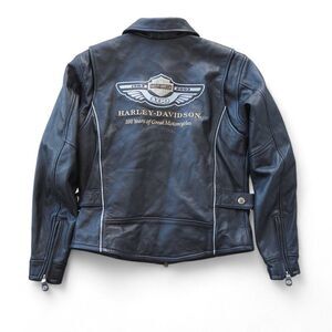 Harley Davidson 03 Vintage 100th Anniversary Motorcycle Leather Jacket Women's S