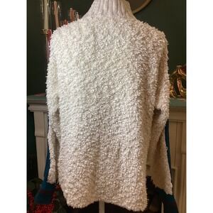 STS Ranchwear Cream Fuzzy Sherpa Quarter Zip Pullover Sweater Teal Stripe Size L