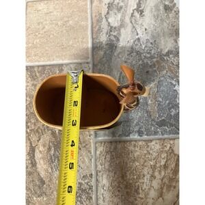 Charming metal giraffe planter, pot holder, or desk organizer. This playful piece features the iconic giraffe silhouette with a textured, spotted finish, perfect for adding a touch of whimsy to any space. The oval-shaped container is divided into two compartments, ideal for small plants, pens, or other desk essentials.