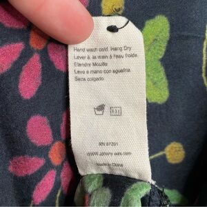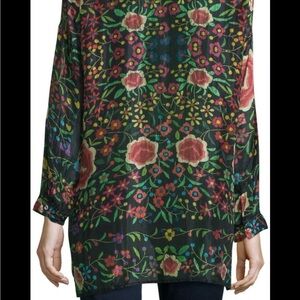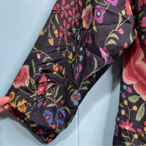 Johnny Was Size XXL Black Multi Floral 100% Silk Button Front Blouse