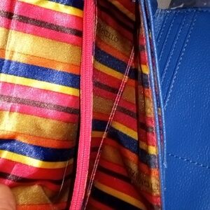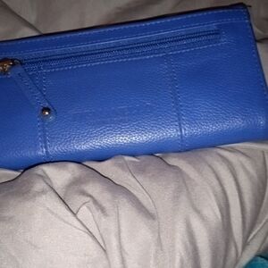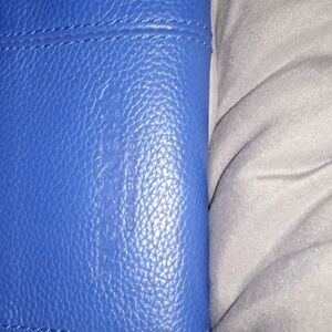 Elegant blue leather wallet with a sleek design. Perfect for organizing your essentials in style. Please note there is some peeling. Otherwise, in great condition gorgeous color a lot of of pocket space a lot of room for credit cards big zipper pockets on the outside and inside gorgeous color. Offers are gladly accepted.
