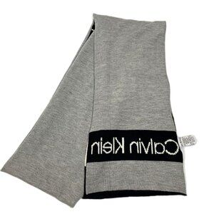Calvin Klein, logo knit scarf, unisex scarf, gray and black, neutral tones, striped scarf, CK scarf, modern branding, 2015 Calvin Klein, streetwear, minimalist, winter accessory, gift idea, 9x82 scarf, new without tags