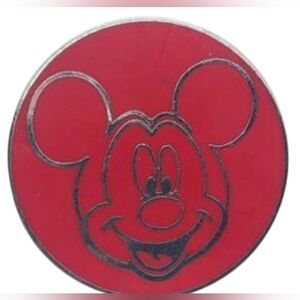 Round pin featuring Mickey Mouse in red. Perfect for Disney fans.