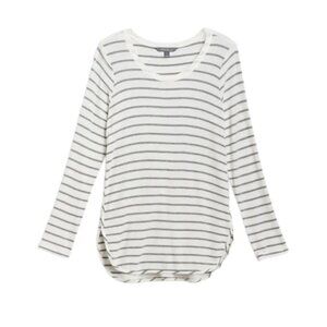 NWT Market & Spruce Zansia Curved Hem French Terry Knit Top in Off White / Gray