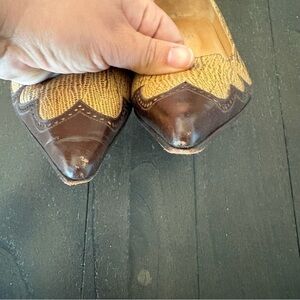 Rallys Brown Ran Leather Pointed Toe Wingtip Kitten Heels Vintage Size 9