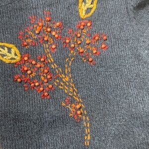 Alfred Dunner Blue Sweater with Sunflower Embroidery cottage core and vintage