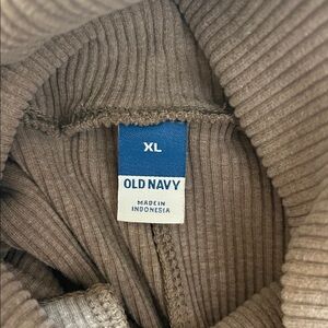 Cozy taupe turtleneck dress with ribbed texture. Good for a warm, stylish outfit. Has small stain in the front of it but was only worn once.