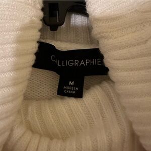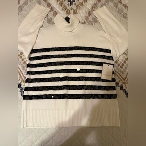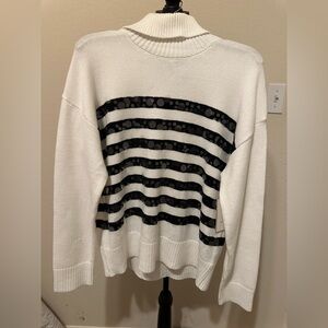 Calligraphie Elegant White Sweater with Black Lace, embellished Stripes. SzL NWT