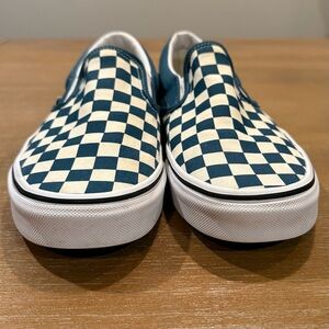 Vans Classic Slip-On Checkerboard Teal Blue Cream White Skater Sz M 7.5 / W 9