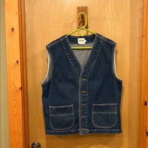 Tumbled indigo denim vest with button-up front. Features two front pockets. Perfect for layering. Excellent condition, barely worn, a little too big for me.