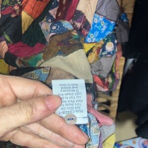 Colorful patchwork blouse with unique patterns. Features a mix of vibrant hues. Ideal for a bold fashion statement.