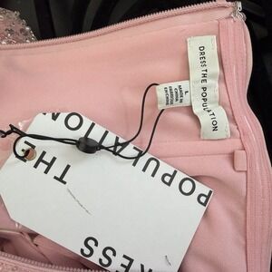 Turn heads in this NWT Dress the Population pink sequin strapless mini dress, designed for nights out, parties, and special occasions. This figure-hugging silhouette features an allover sequin and bead embellishment that catches the light beautifully, creating a glamorous yet polished look.