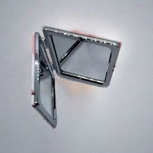 Adorable dual mirror measures 2.75” x 2.75” and will be perfect for your bag, cosmetic case, gym bag, work desk or travel items. Made of faux leather.