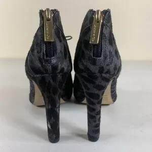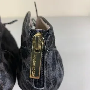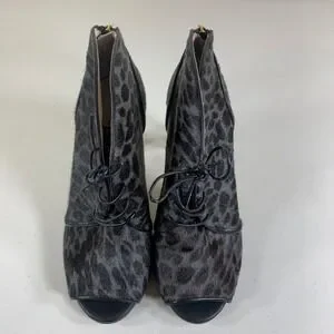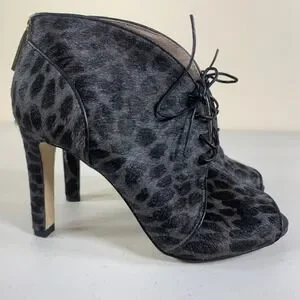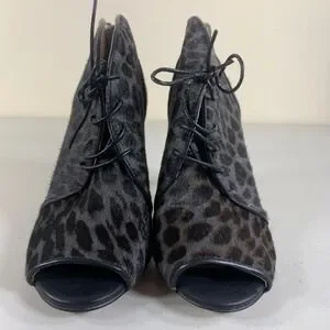 Louise et Cie Leopard Print Cow Hair Fur Peep Toe Lace Up Ankle Booties Heels 6M