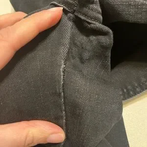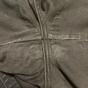 Light thinning at the crotch seam from normal wear.