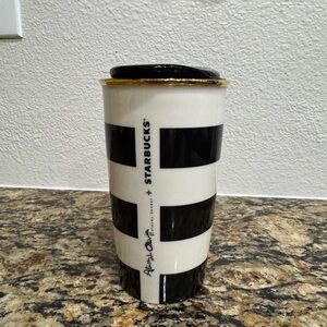 This is a Starbucks 2013 Alice and Olivia ceramic tumbler mug.