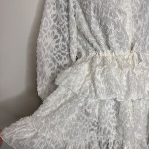 MISSGUIDED Textured Embroidered Georgette Shirt Dress With Tiered Ruffle Hem