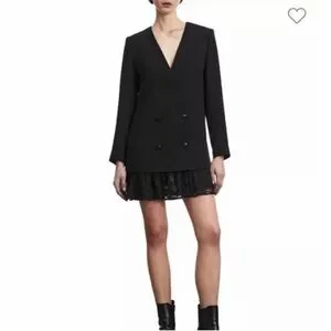 Super rare and extremely sought after The Kooples black blazer dress with lace bottom, double breasted. Has some stretch. Brand new with tags. Size 1 (S).