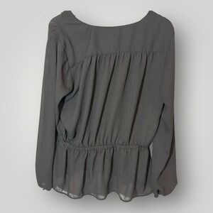 Worthington Blouse Women's Large Grey V-Neck Button Up Long Sleeve Top Shirt