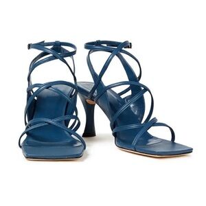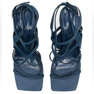 By Far Christina, By Far heels, square toe sandals, strappy heels, leather suede sandals, navy heels, designer shoes EU 36, contemporary luxury, event heels