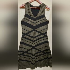 Elegant Olive and Black Chevron Knit Dress