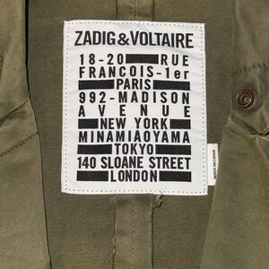 Zadig and Voltaire Olive Green Utility Jacket Love Punk Size M