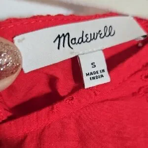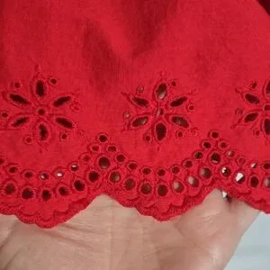Chic red blouse with eyelet details. Perfect for casual outings.