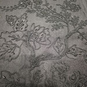 Chic black A-line skirt by Talbots. Features intricate floral embroidery. Perfect for elegant occasions.