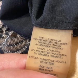 - Polyester/nylon/spandex; polyester/spandex lining.