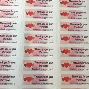 90ct valentines heart pink thank you for your purchase stickers.
