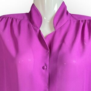 Vtg 1980s Ann Chabrol Sheer Fuchsia Pink Blouse Med Button Up Barbiecore
