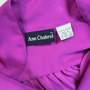 The Vtg 1980s Ann Chabrol Sheer Fuchsia Pink Blouse in size medium is a classic button-up top perfect for various occasions including business, formal events, and casual outings. Made of lightweight polyester chiffon fabric, this blouse features a collared neckline, long sleeves with fitted cuffs, and a pleated accent. The vintage piece exudes a retro 80s vibe with a hint of designer flair, making it a versatile and stylish addition to any wardrobe. Ideal for summer, fall, and spring, this blouse is machine washable and a limited edition find from Korea.