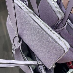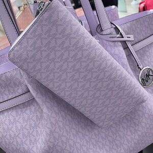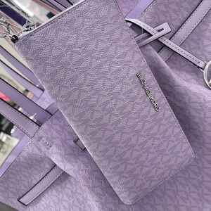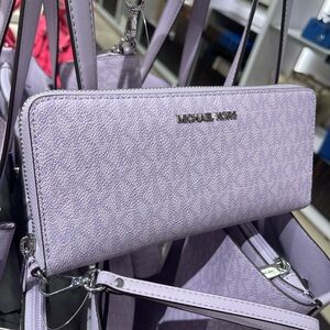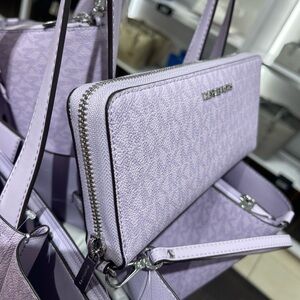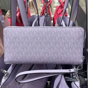 MICHAEL KORS Jet Set Lg Signatu Logo Continental Wallet Wristlet Phone Lt Quartz