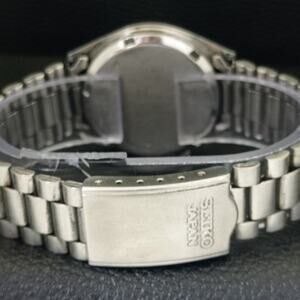 Vintage 1977 Seiko Automatic Mens Silver Watch W/daydate & Red accents