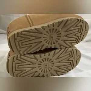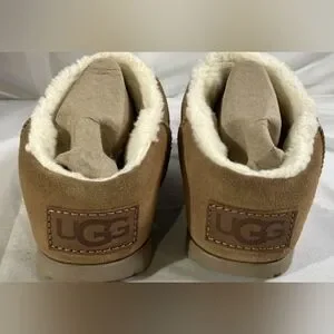 Cozy UGG slippers. Soft tan suede. Plush lining for comfort.