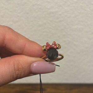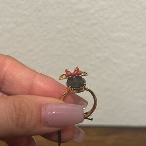 Chic kate spade ring with a bold black stone. Accented with a red bow and gold details. Perfect for adding a touch of elegance.