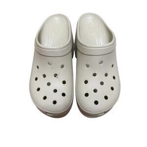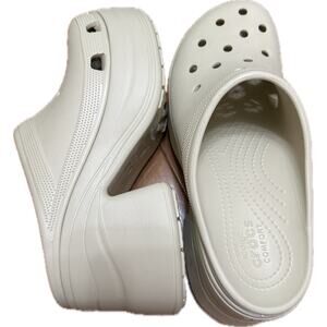 Brand new without tags — Crocs Siren Clog in bone white. These statement clogs feature a high block heel, iconic Crocs ventilation ports, and lightweight Croslite™ comfort. A bold and trendy twist on the classic clog, perfect for streetwear styling or adding height to everyday looks.
