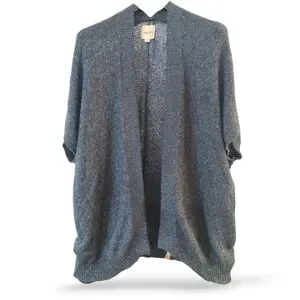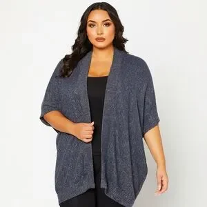 Super soft Harlow plus-size open-front knit cardigan in a versatile charcoal black heather. Lightweight with a relaxed drape, ribbed trim, and short sleeves — ideal for easy layering.