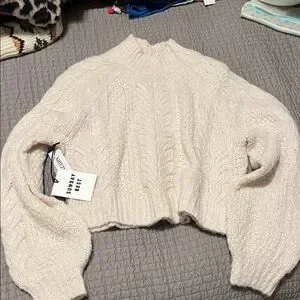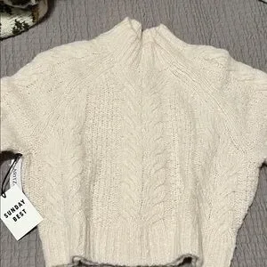 Cozy cream turtleneck with cable knit design. Perfect for warmth and style. Fits small size too.