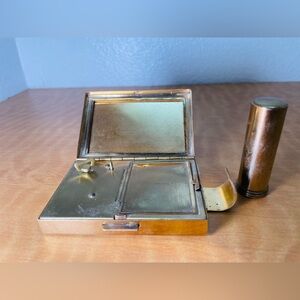 The set includes a rectangular compact case and a cylindrical lipstick holder