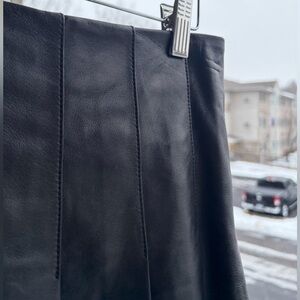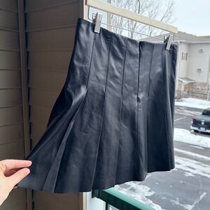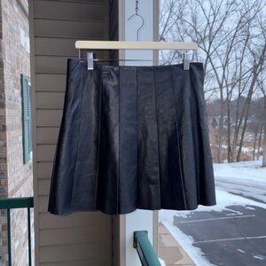 🆕 Antonio Melani Black Genuine Leather Pleated Mini Skirt Size 10 Classic Luxury