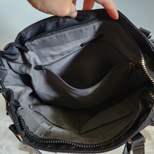 Ellen Tracy Black Gold Twill Nylon East West Tote Shoulder Bag Purse NWT