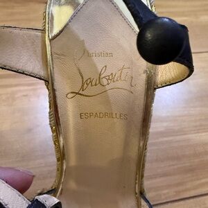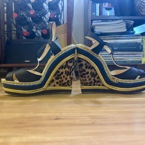 Christian Louboutin Trotolita Black and Gold Leopard Wedges 7.5 / 38.5