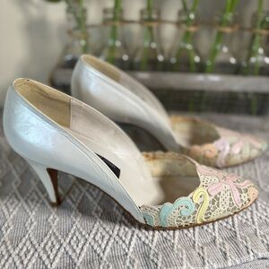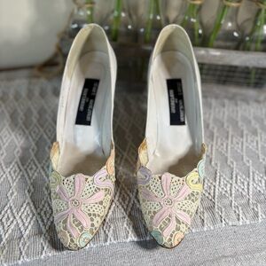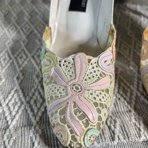 Stuart Weitzman Pearly white and pastel leather on lace. Size 8.5 AA