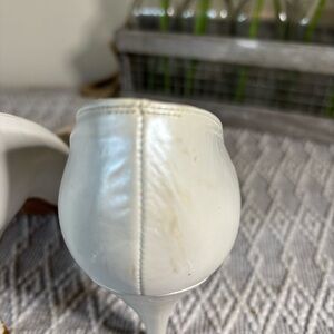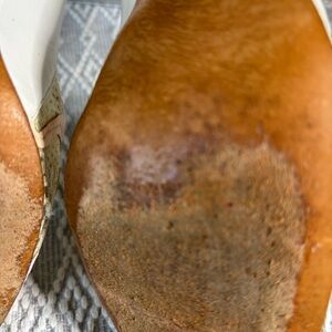 Pre-owned. Some discoloration on the inside top of foot as shown. Likely tanning lotion. Marked on the bottom Made in Spain. Light scuffing. 3” heel. Made to last.