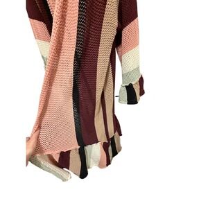 POL Striped Kimono Cardigan Boho Ruffle Hem Long Sleeve Pink Tan Burgundy