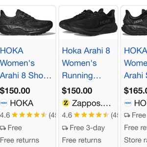 HOKA Arahi 8 women Best seller NEW Sz 7.5D COLOR: Black / Black